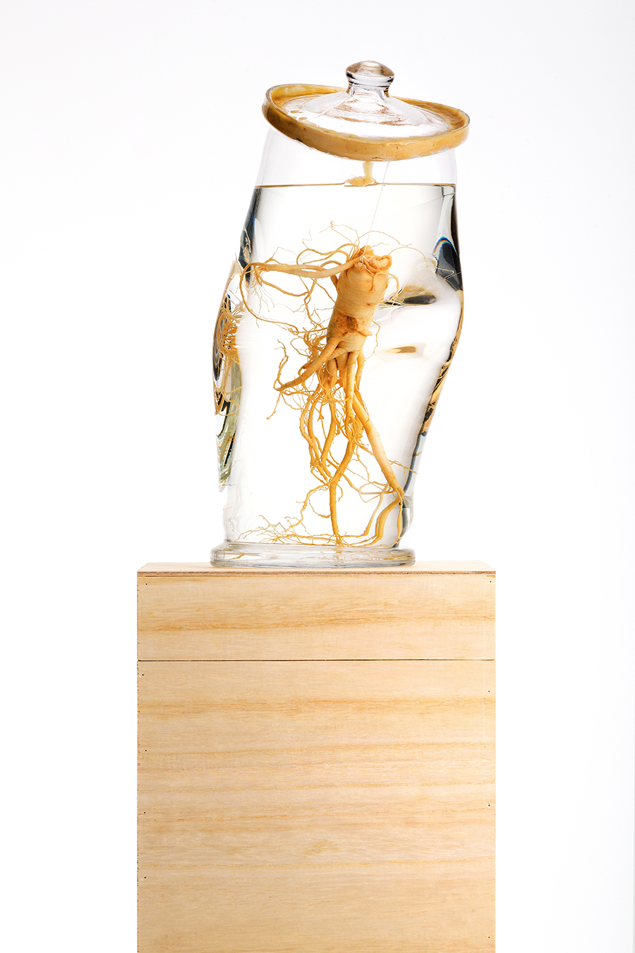 약술3_38+17_인삼,멜팅변형담금주병,천연밀납,오동나무상자_2021